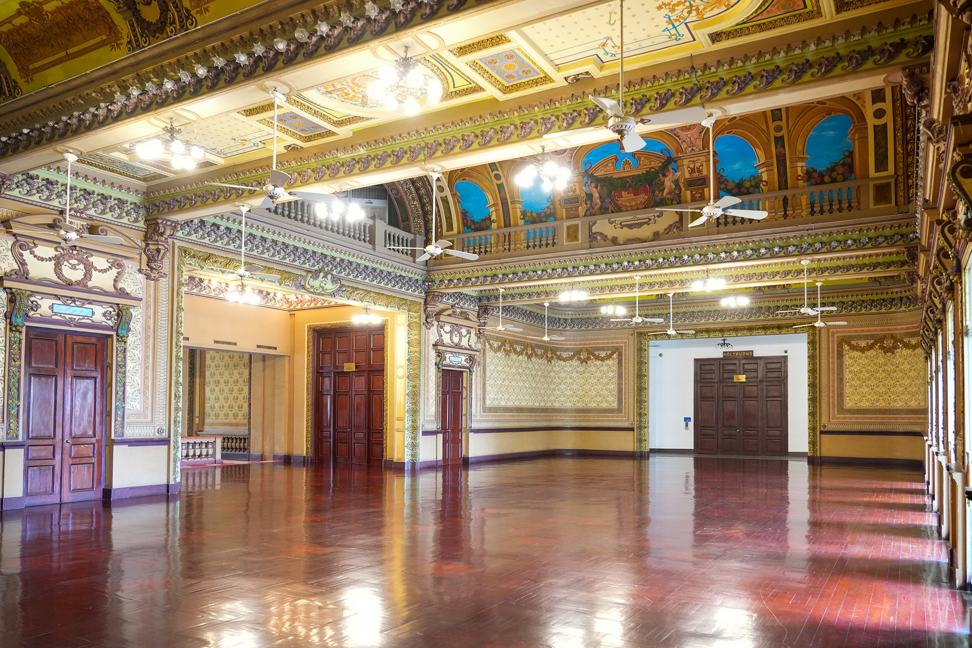 Toàn bộ mặt tiền và bên trong trụ sở được bảo tồn hầu như còn nguyên giá trị kiến trúc, những tấm phướn, bờ tường chạm khắc tỉ mỉ trên các mái vòm cong, khung cửa sổ, cột trang trí. Từ cổng chính dẫn vào sảnh lớn giữa tầng trệt, hướng thẳng đến cầu thang dẫn lên lầu một.